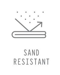 The smooth surface of our polyester and polymaid smooth material has no pile (loops) so sand won't stick or stay stuck on the surface. You can easily give a shake to have sand brush off the surface and machine wash & dry.